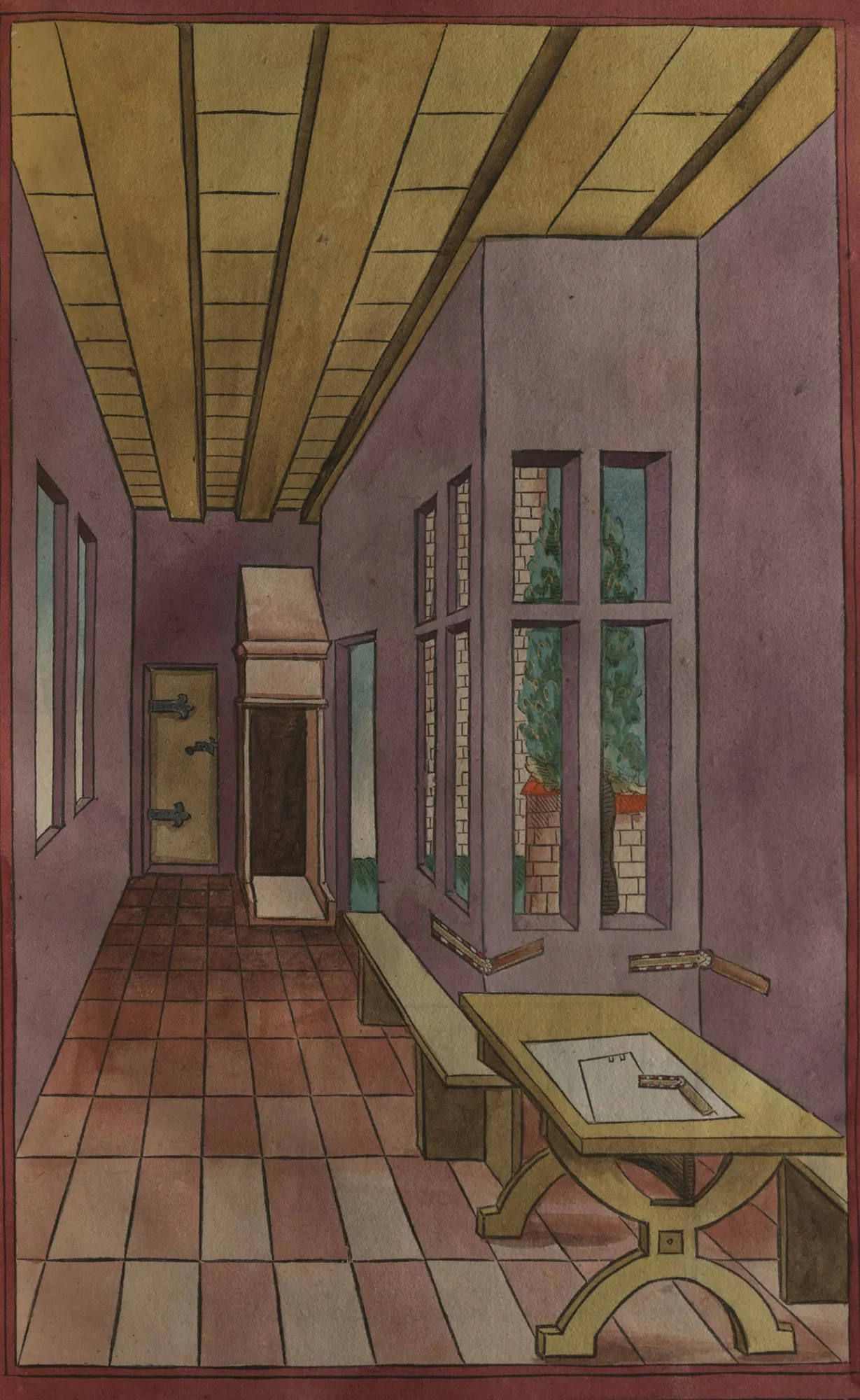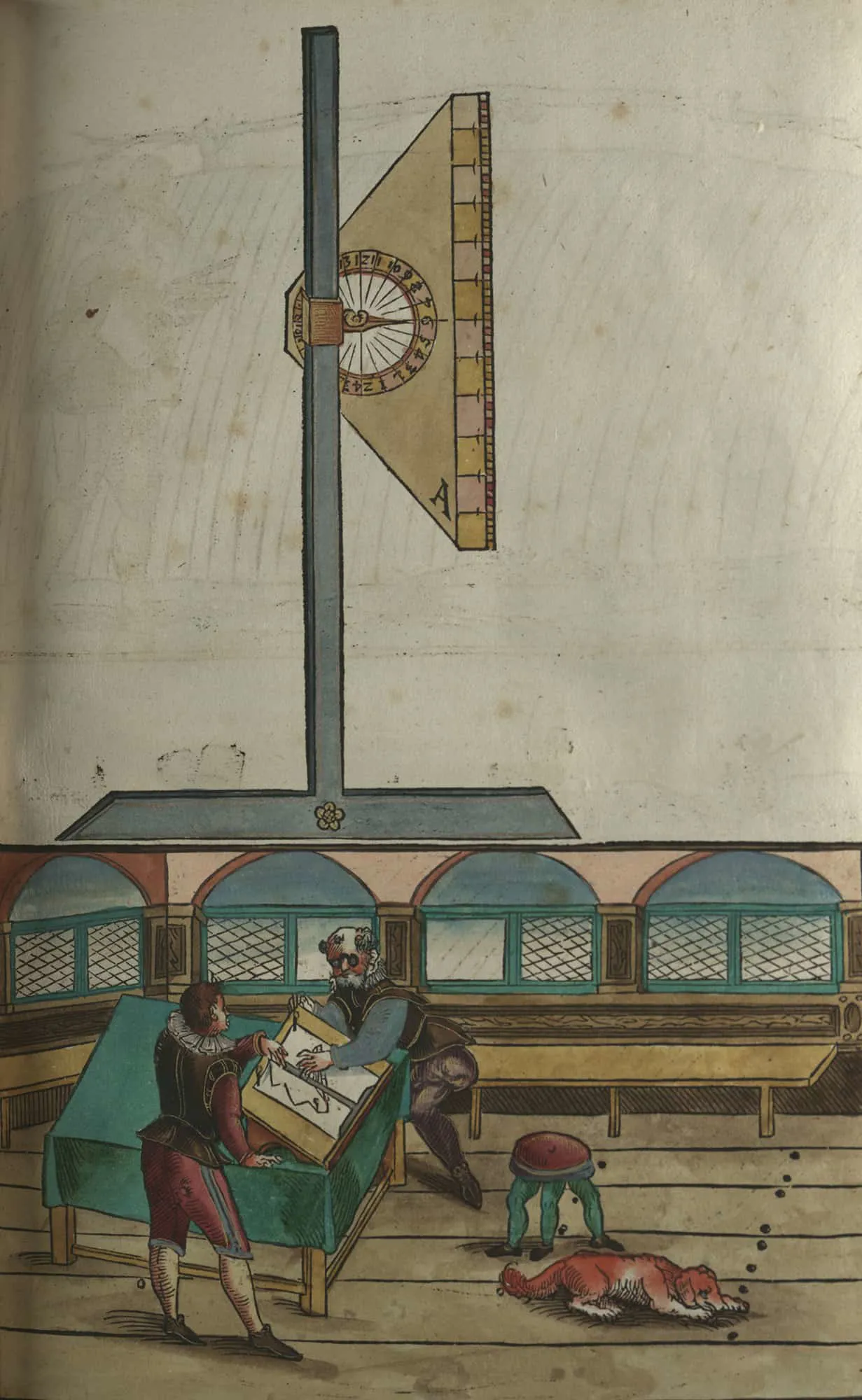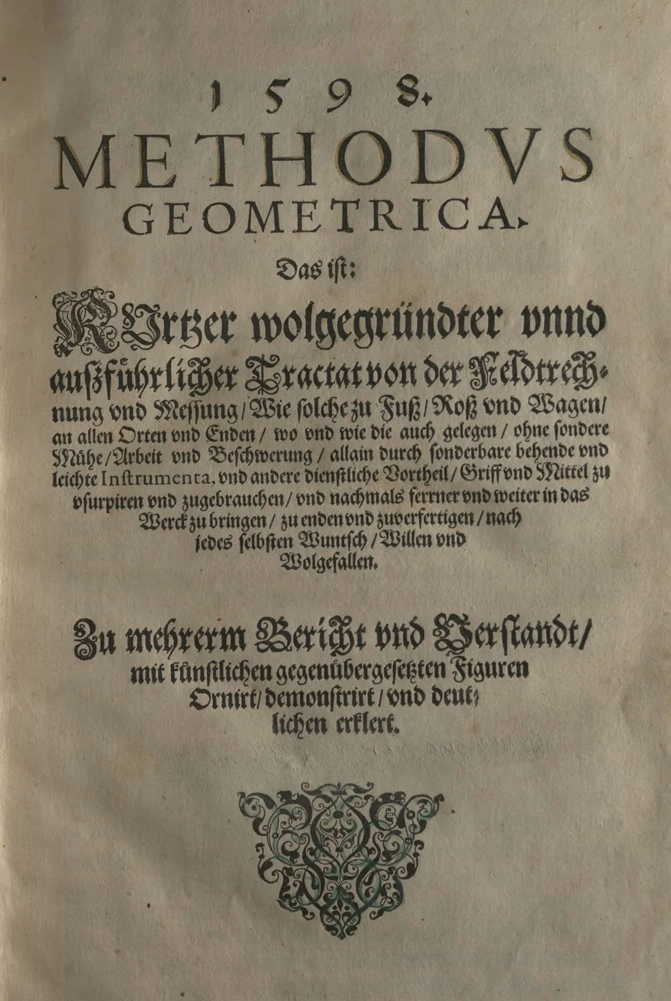 This 16th century early printed, hand coloured treatise on geometry and surveying was published in 1598 in Nuremburg, Germany.