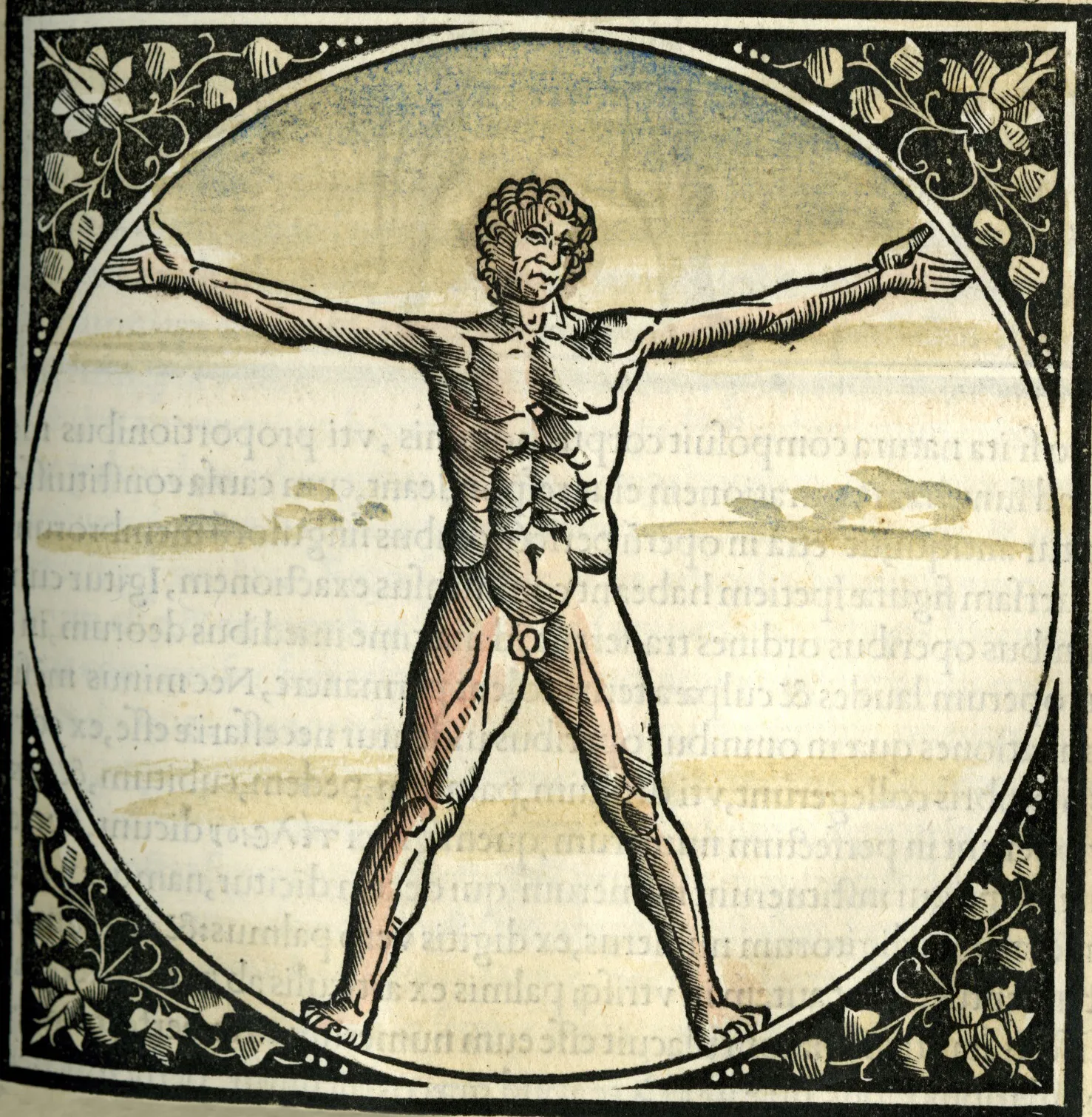 This has been most famously depicted by Leonardo da Vinci with his Vitruvian Man, a human body within the circle and square which Vitruvian believed were the definitive geometric models within the cosmic order.