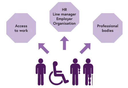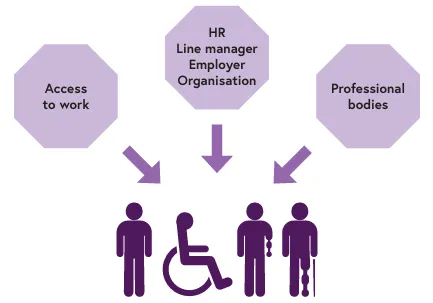 - Line managers, HR and colleagues are aware of how to create disability inclusion and work with the disabled person to ensure their physical, psychological and social needs are met