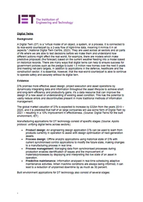 - Digital Twins adoption: The Government should make use of best practice in DT technology to help support changes to national infrastructure, healthcare, new housing, energy targets and other sectors to ensure taxpayers money is used optimally and the final product is efficient and resilient.