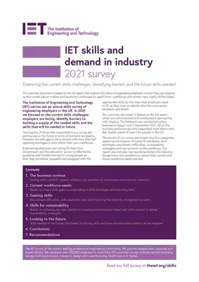 The results of our survey are broken into five categories, exploring the impacts of Covid-19 and Brexit, skills shortages, recruitment difficulties, sustainability strategies, and new entrants to the workforce. The summary also includes key recommendations for industry, government, and academia to ensure that current and future workforce needs are met.