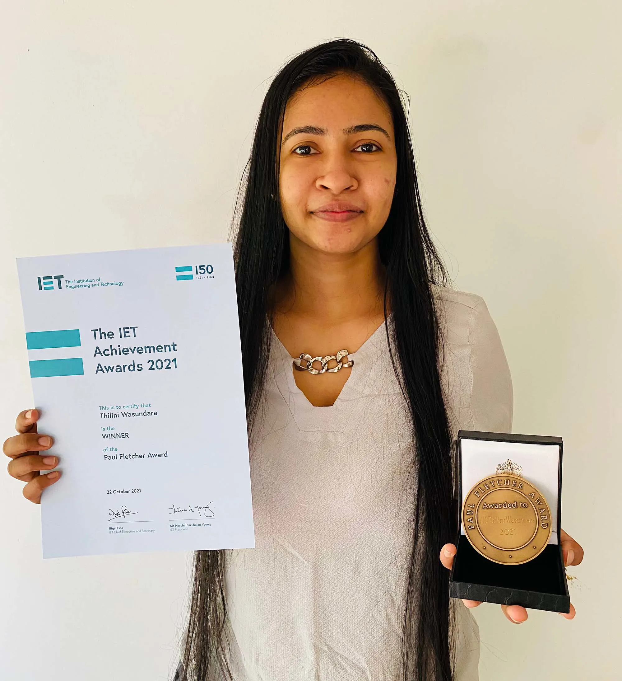 Winning the 2021 IET Paul Fletcher Award came as an enormous surprise to Thilini: “I was very shocked and so happy to win the award. It’s fantastic. I feel like I’m making a difference and I’m so proud about it.