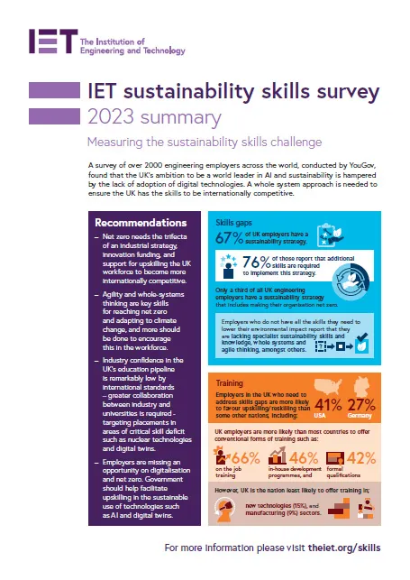 Stephanie Baxter, Head of Policy at the IET, said: “The skills deficit means we are not ready and resilient to tackle climate change, both in the UK and beyond. Net zero needs the trifecta of an industrial strategy, innovation funding, and support for upskilling the UK workforce to become more internationally competitive.