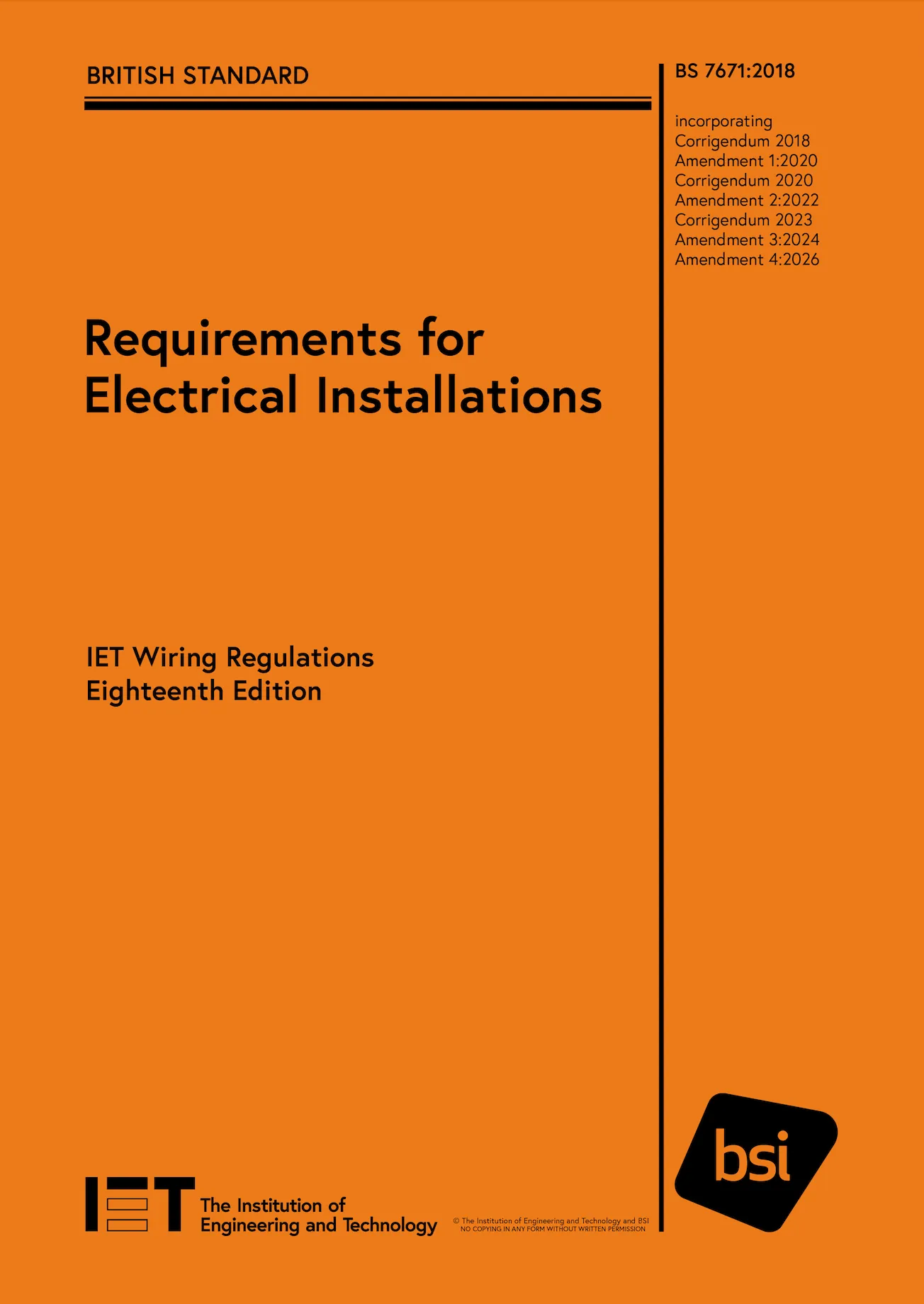 The Institution of Engineering and Technology (IET) together with BSI have today signed off the content for Amendment 4 (2026) to the standard Requirements for Electrical Installations (BS 7671:2018) (18th Edition of the IET Wiring Regulations).