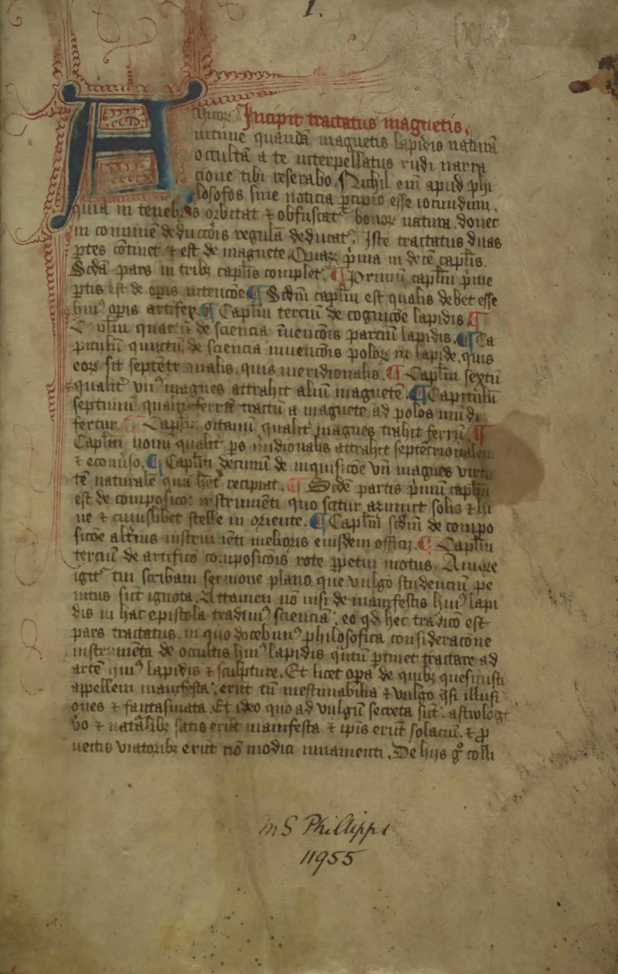 So this one early manuscript contains two pioneering works: the first attempt to describe magnetic forces scientifically and an assault on the dominance of Latin for scientific literature.