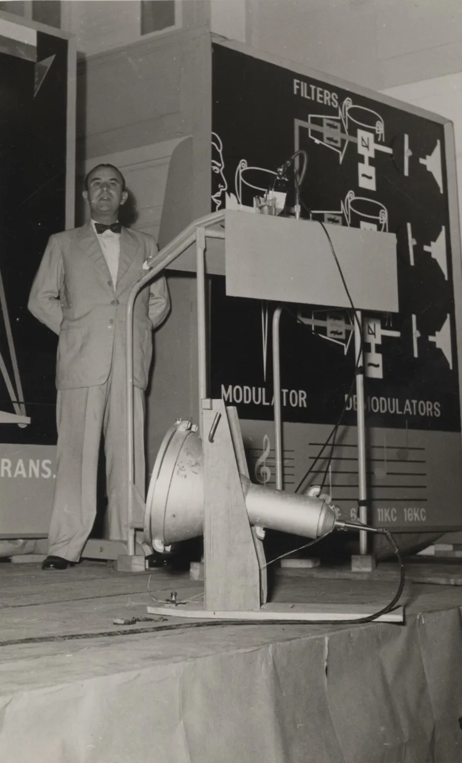 The lecture was a not only a spectacular show with a purpose-built transportable set that incorporated an elaborate lighting system, together with multiple slide projections, film and sound, it also explained a complex yet fundamental development in technology.
