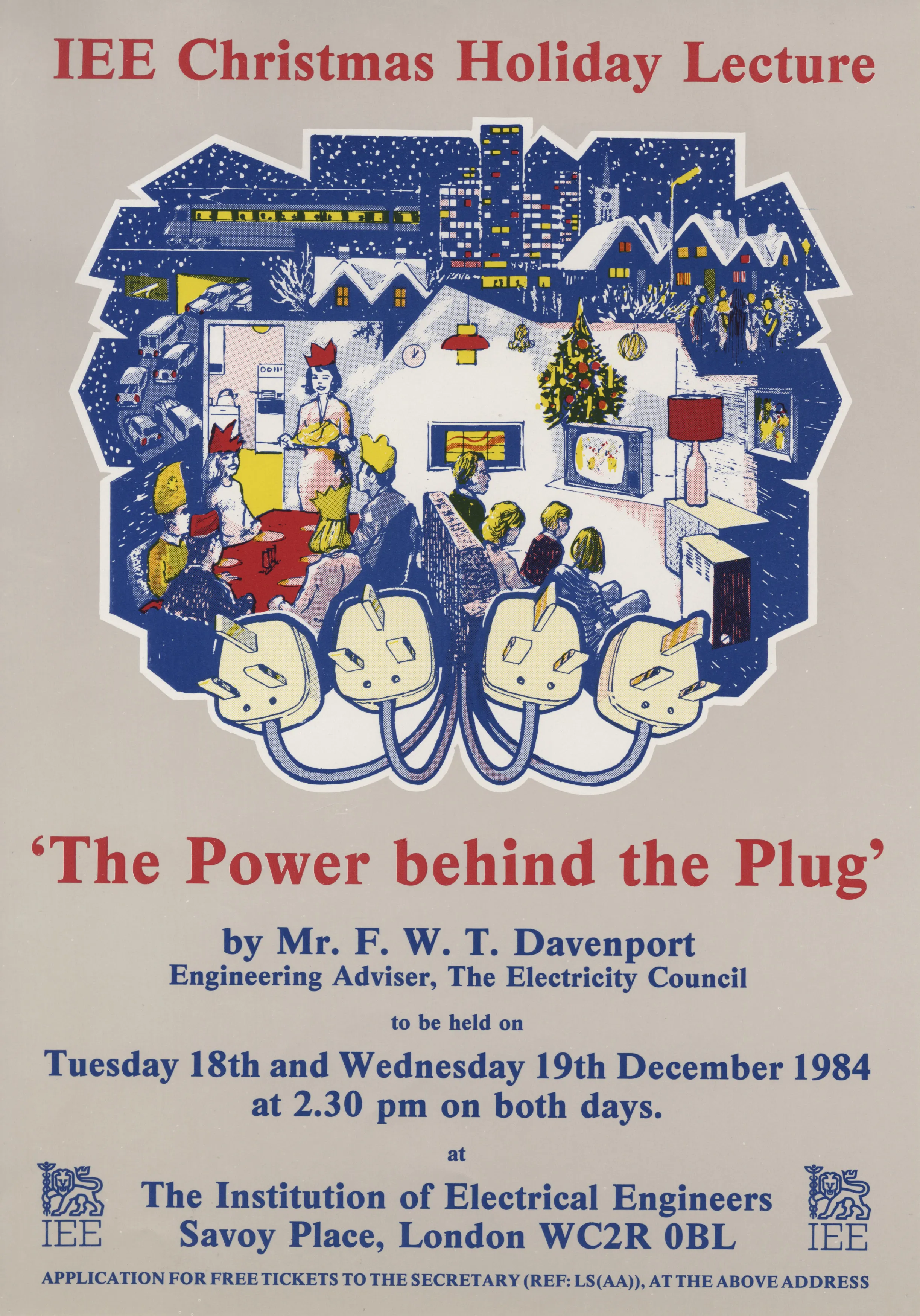 The Christmas Holiday Lecture in 1984 was entitled ‘The power behind the plug’ by F.W.T Davenport, Engineering Advisor, at the Electricity Council.