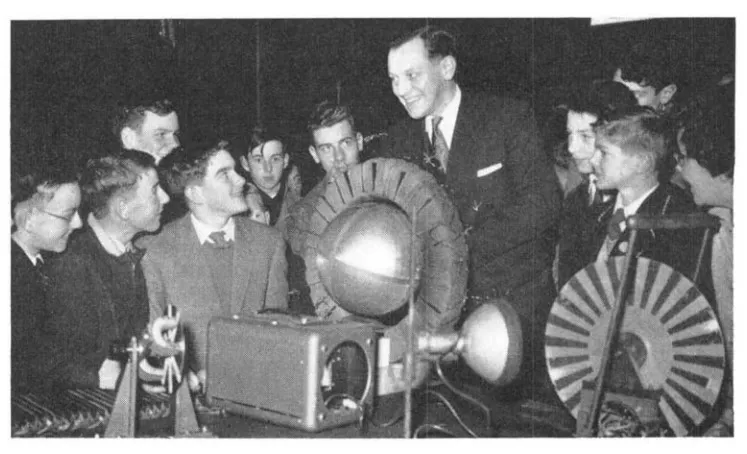 Dr Laithwaite with audience in 1959 delivering his Christmas Holiday Lecture 'Invention and new machines' Journal of the Institution of Electrical Engineers February 1959
