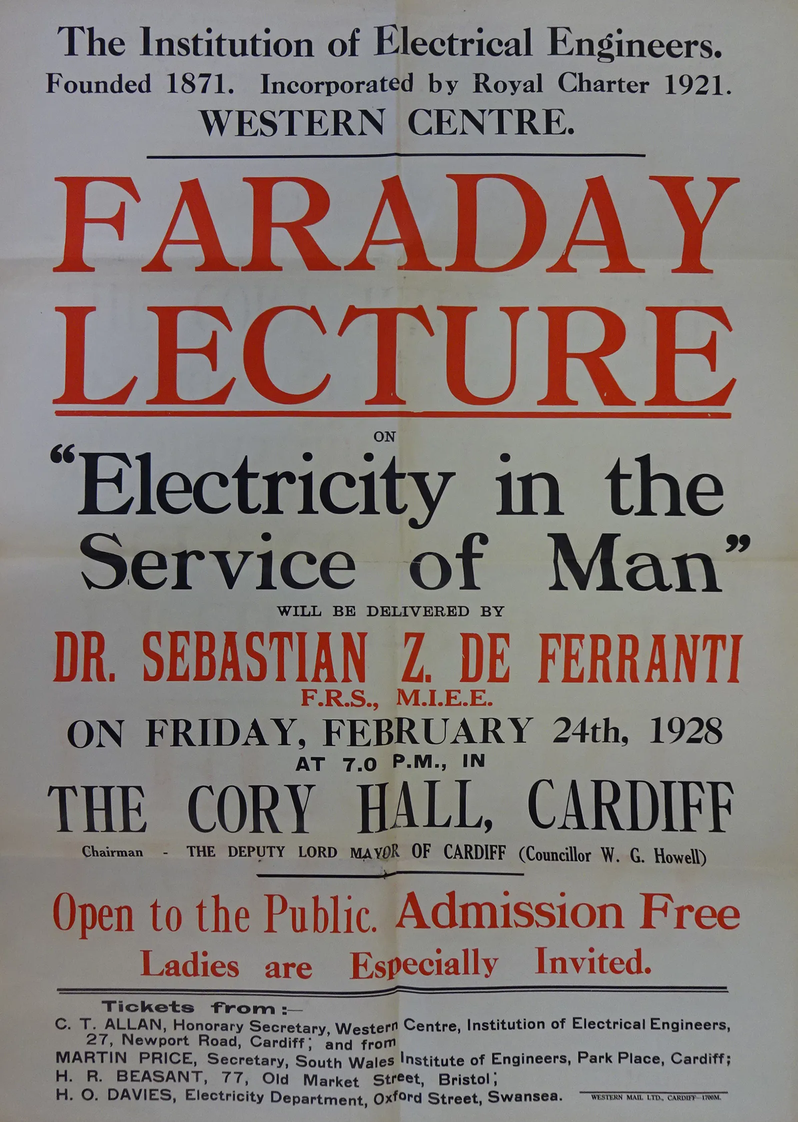Faraday Lecture poster 1928 ref. IET Archives IET/LEC/01/40