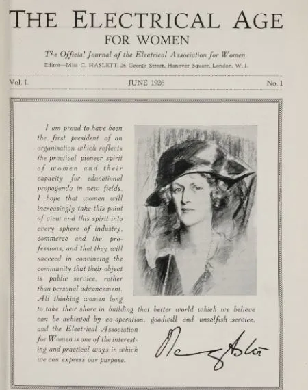 The Electrical Age, Volume 1 June 1926, message from the first president Nancy Astor, Viscountess Astor