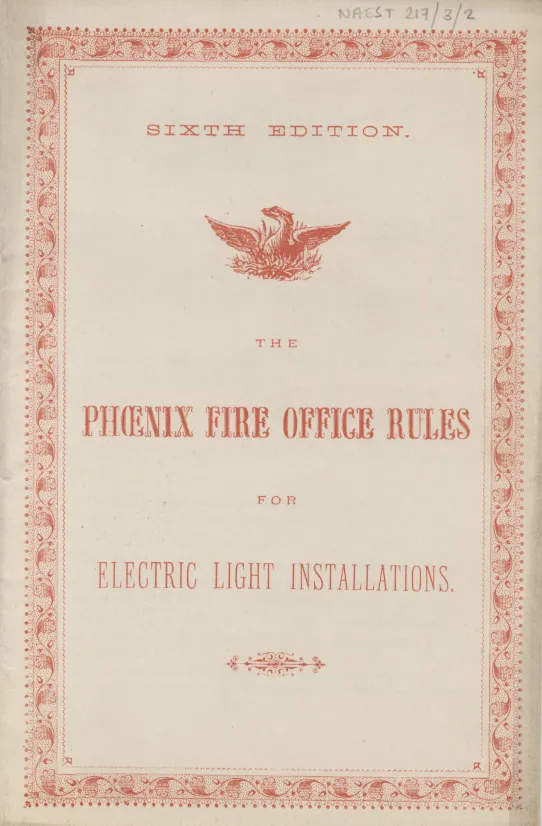Phoenix Fire Office published a report in February 1882 by Musgrave Heaphy which included the first set of rules for electric wiring included as an appendix. Musgrave Heaphy was elected a member of the STE in 1886.