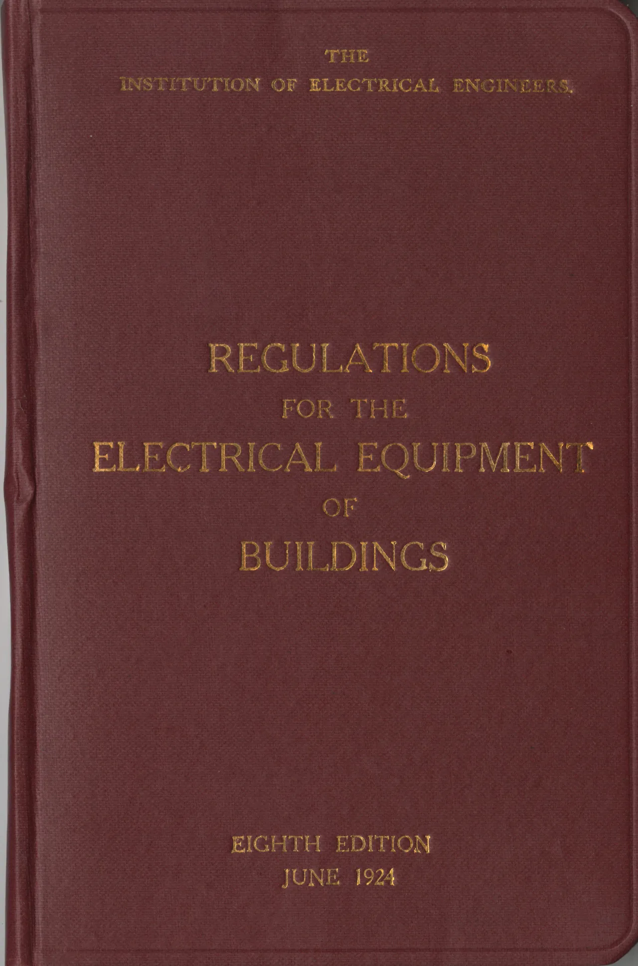 1924 the IEE’s Eighth Edition was issued, entitled ‘Regulations for the Electrical Equipment of Buildings’.