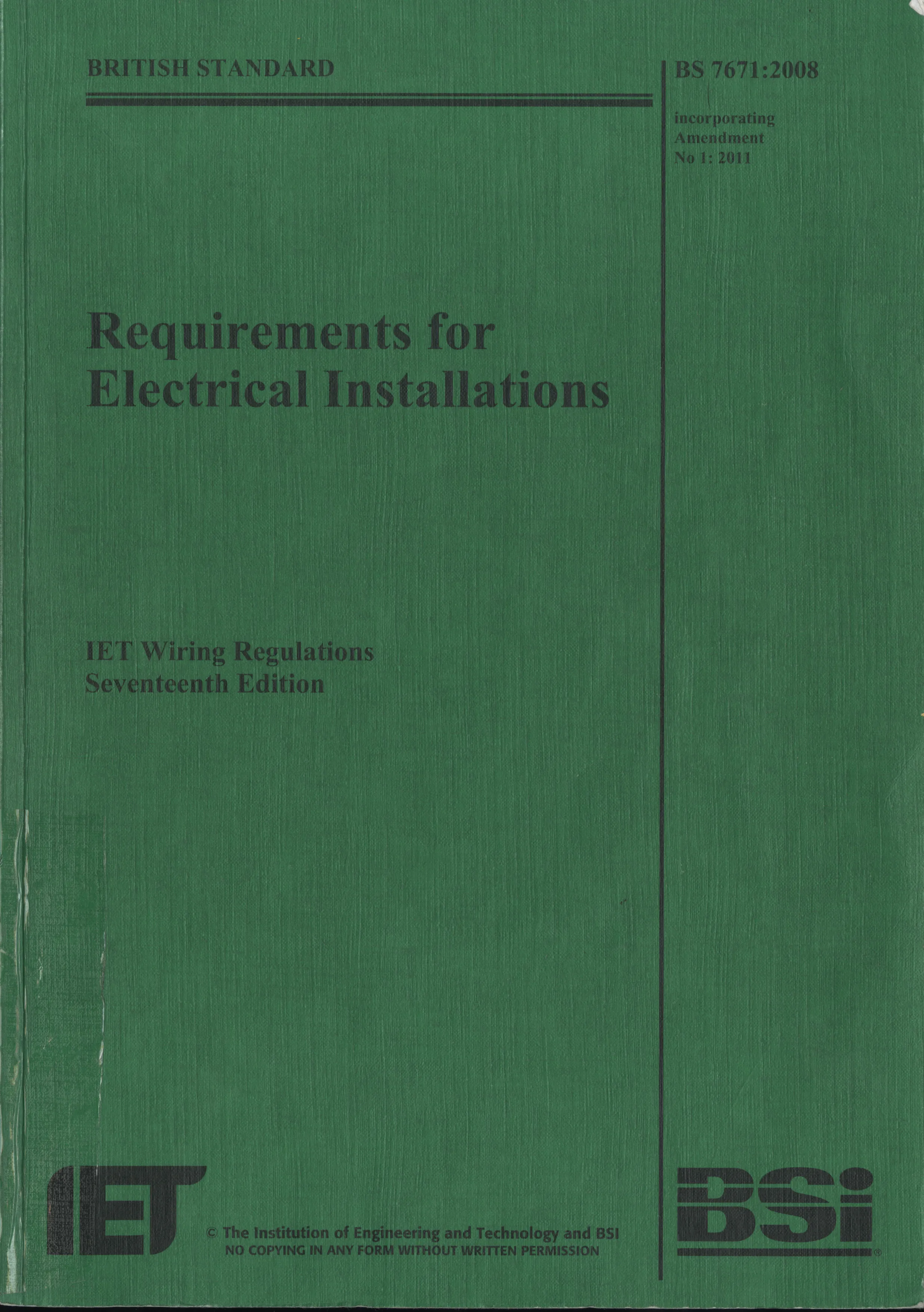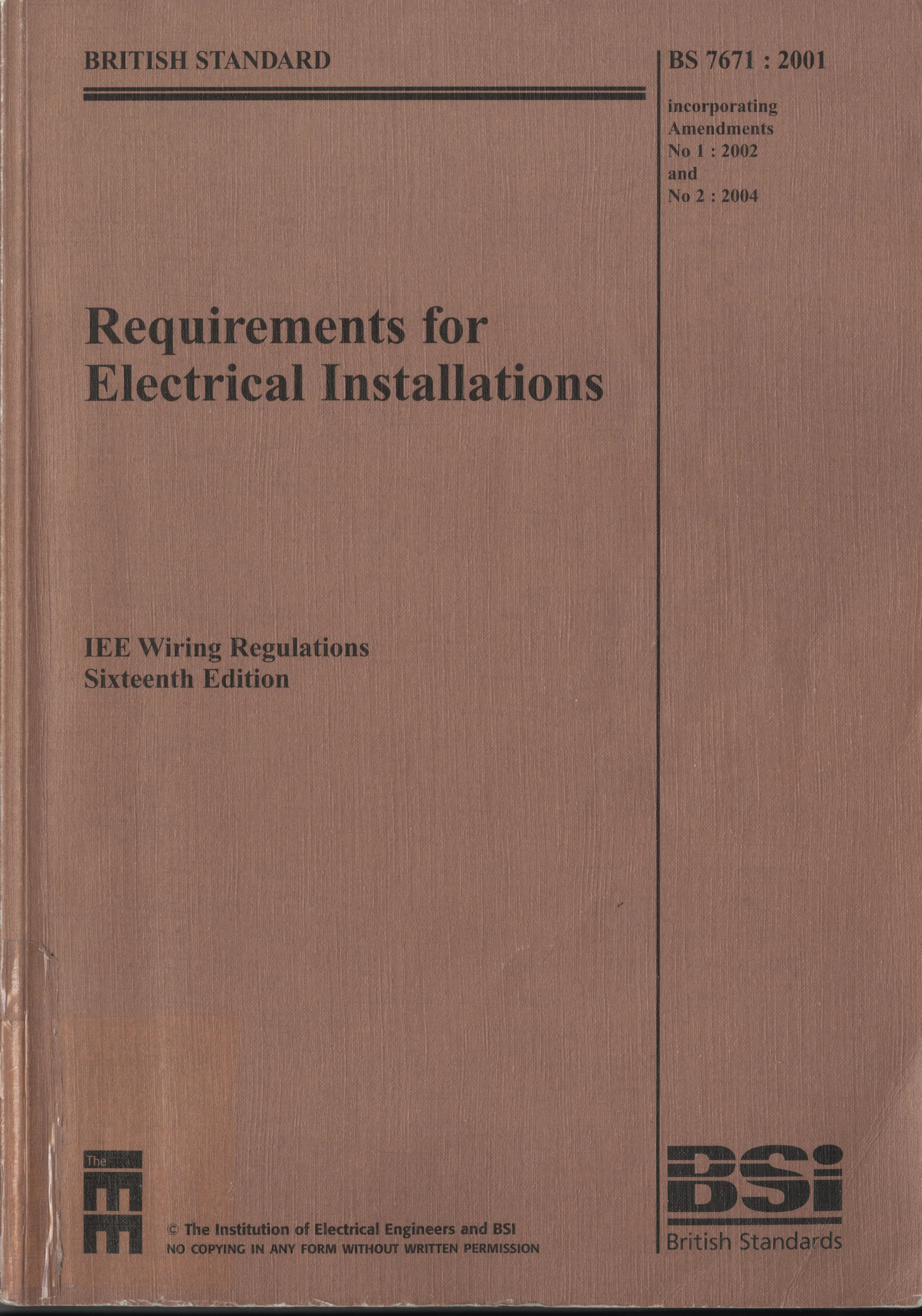 In October 1992 The British Standards Institution (BSI) and the IEE signed an agreement which made the 16th edition of the IEE Wiring Regulations into British Standard 7671 (BS 7671: 1992 ‘Requirements for electrical installations’).
