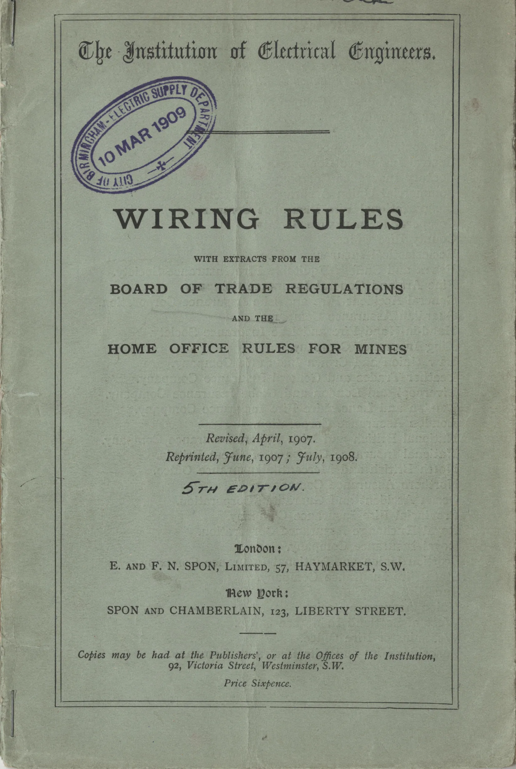 1907 Fifth Edition was issued, entitled ‘Wiring Rules’