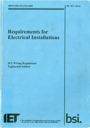 The IET Wiring Regulations Eighteenth Edition BS 7671:2018 was published on 1 July 2018. Some of the major changes included:
