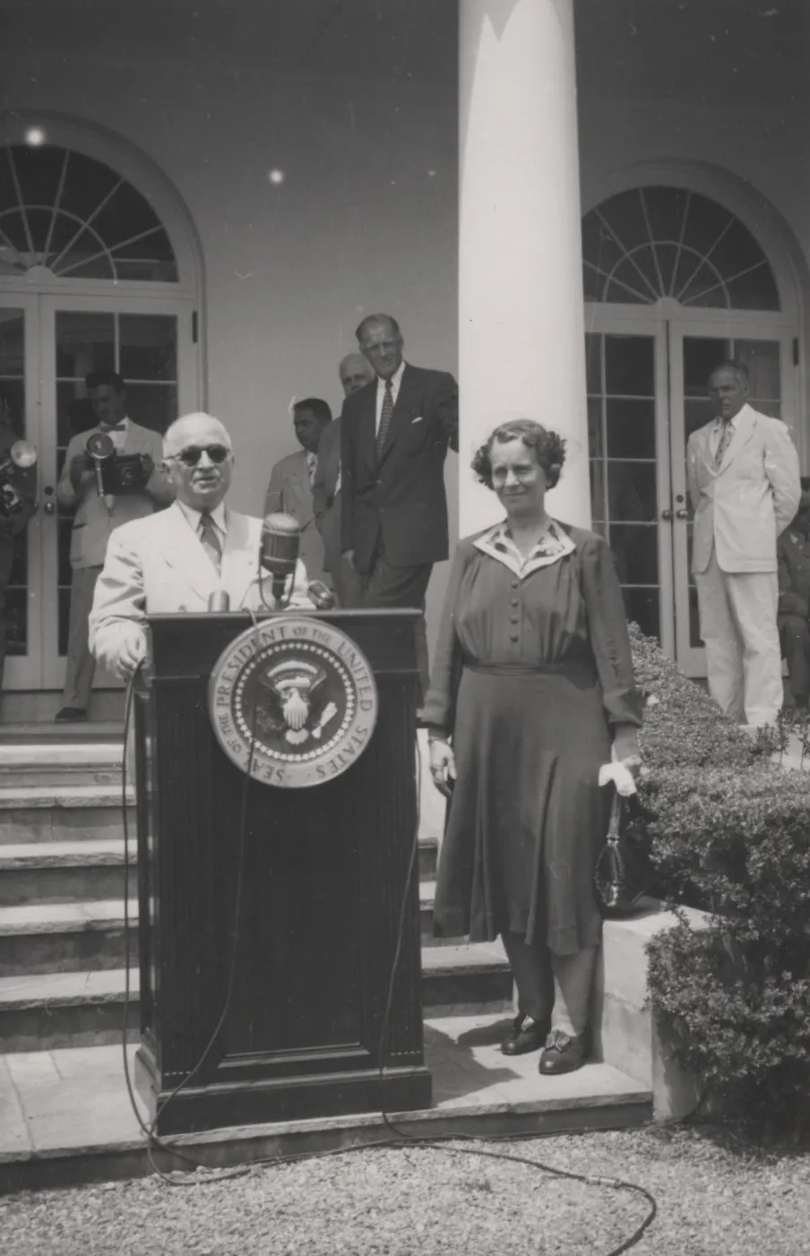 Caroline Haslett and President Truman at the White House 1952 ref. NAEST 33/12/06.